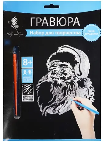 Набор д/творч. Гравюра серебро Санта-Клаус (HY340001136s) (18х24 см)(8+) (Hobby and you)
