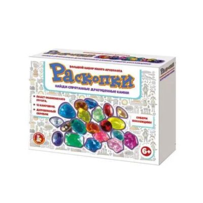 Раскопки «Драгоценные камни» (12 шт) Состав игры: пласт грунта (гипс); деревянный стек – 1 шт; драгоценные камни из пластика — 12 шт. Для детей старше 6 лет.