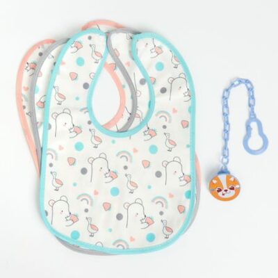 Набор детских слюнявчиков крошка я, 3 шт. + подарок, 29х20 см., цвет бирюзовый, розовый, серый