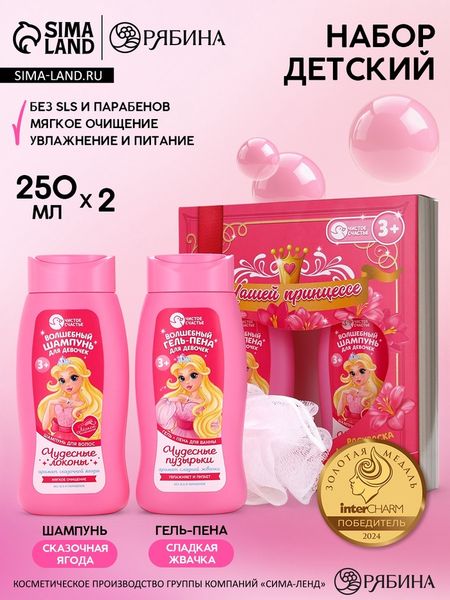 Главная » Товары для детей Набор детский «Нашей принцессе», гель-пена 250 мл, шампунь 250 мл, мочалка 25 г Просмотров 3 Набор детский «Нашей принцессе», гель-пена 250 мл, шампунь 250 мл, мочалка 25 г Чистое счастье