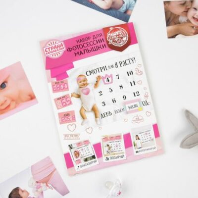 Набор для фотосессии малышки. Ваш малыш так быстро растет, что хочется остановить мгновение! Делайте фотографии в первые дни, недели, месяцы — и у вас будет чудесная возможность навсегда сохранить в памяти эти трогательные моменты. <b> Итак, начнем!</b> 1. Поместите фотофон на ровную поверхность; 2. Положите или посадите ребенка на фотофон; 3. Расставьте рамочки в соответствии с возрастом малыша; 4. Фотографируйте! <b> Состав набора:</b> — наклейки — 4 шт.; — рамки — 2 шт.; — листы-метрики — 3 шт.; — фотофон 100 х 70 см. — 1 шт.