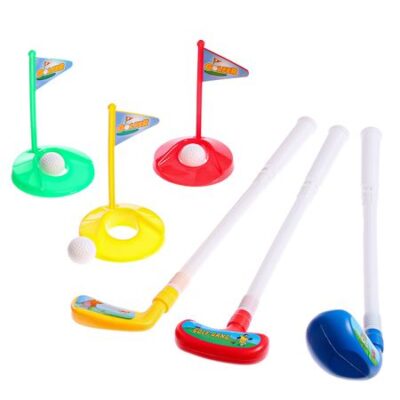 Набор для гольфа «Меткий игрок», 9 предметов. <strong> Стань супергольфистом! </strong> Почувствовать себя настоящим спортсменом кроха сможет с набором «Меткий игрок». Он разнообразит детские игры на природе, малыши с удовольствием будут катать мяч клюшкой, стараясь забросить его в лунку. Чтобы малютке было легко довести мяч до цели, в комплект входят 3 разнообразные клюшки: одна для ввода мяча в игру, другая для прохождения коротких дистанций и третья пригодится для выбивания мяча из песка или травы. Играя в гольф, ребенок разовьет координацию движений, точность и меткость, научится выстраивать стратегии. Товар предназначен для детей от 3 лет.