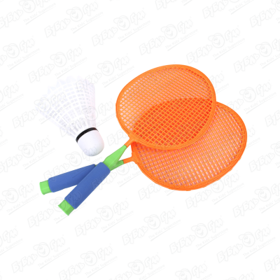 Набор для игры в бадминтон две ракетки и воланчик оранжевый с синими ручками 61см
