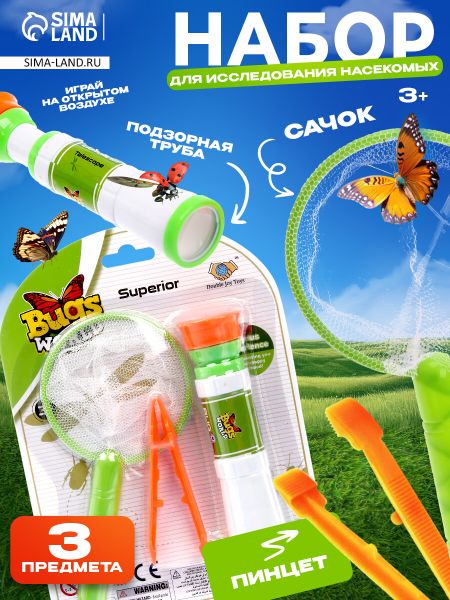 Набор для исследования насекомых «Ловкий исследователь», 3 предмета. Набор для исследования насекомых отлично подойдет для долгих забав на свежем воздухе. Игрушка познакомит ребенка с удивительным миром насекомых, а также разовьет ловкость, внимание и воображение. <b> Изучайте окружающий мир вместе с малышом!</b>