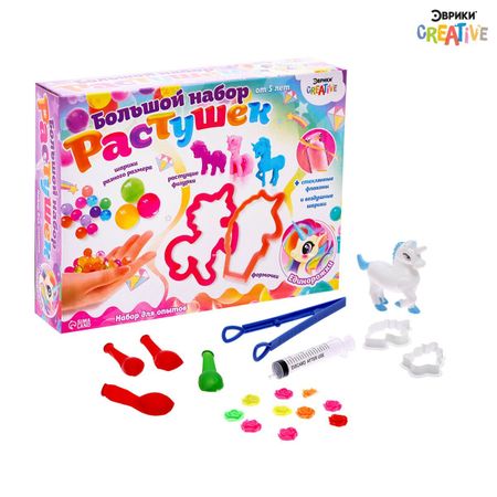 Набор для опытов «Большой набор растушек, единороги». С набором для опытов «Эрвики» ребенок проведет увлекательный эксперимент c шариками орбиз. Познакомьте юного ученого с миром науки! <b> Как создать игрушку-растушку своими руками</b> <ol> <li> Опустите шарики орбиз в воду на 20–30 минут.</li> <li> Когда они увеличатся, поместите их в шприц.</li> <li> Выдавите массу в формочку, дайте будущей фигурке застыть.</li> <li> Достаньте фигурку из формочки и опустите в воду на 8 часов.</li> </ol> <b> Полезные эффекты</b> Экспериментирование пробуждает познавательную деятельность у детей. На таких занятиях развивается логика и научное мышление. Знания, добытые опытным путем, сохраняются надолго.