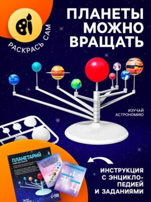 Набор для опытов «Планетарий». <strong> Создайте свою Солнечную систему! </strong> Предлагаем вам вместе с ребенком отправиться в далекое путешествие в космос! А что для этого нужно? Всего лишь хороший настрой, умелые руки и набор «Планетарий» серии «Эврики: Прогрессивные технологии». Дошколенку представится возможность наглядно увидеть строение Солнечной системы, ощутить эффект невесомости не выходя из дома! <strong> С чего начать? </strong> Соберите планеты Солнечной системы и раскрасьте их с помощью кисточки, ориентируясь по рисунку на упаковке. После того как небесные тела будут окрашены, установите готовые планеты на специальный держатель — модель Солнечной системы готова! <strong> Как сделать так, чтобы модель светилась? </strong> Поставьте «Планетарий» на солнце или под источник искусственного освещения. Когда модель зарядится, выключите свет и наслаждайтесь космическим сиянием. Заряжайте устройства по мере необходимости. <strong> В наборе вы найдете: </strong> <ul> <li> баночки с красками;</li> <li> кисточку;</li> <li> подставку;</li> <li> кронштейн для крепления;</li> <li> вращающиеся крепления;</li> <li> наждачную бумагу;</li> <li> кольца Сатурна;</li> <li> стальные стержни;</li> <li> пластиковые части для сборки планет.</li> </ul> <b> Космос ближе, чем кажется!</b> Товар предназначен для детей старше 8 лет.