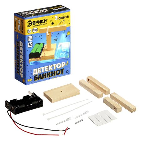 Набор для опытов «Детектор банкнот», 2 опыта. С набором для экспериментов «Детектор банкнот» ваш ребенок сможет самостоятельно создать устройство для проверки подлинности денег. Это увлекательное занятие поможет ему изучить скрытые знаки на купюрах и раскрыть их тайны. <b> Преимущества набора</b> <ul> <li> Два интересных опыта по созданию детектора банкнот.</li> <li> Развитие навыков наблюдательности и аналитического мышления.</li> <li> Понимание принципов работы устройств для проверки подлинности денег.</li> <li> Безопасные и качественные материалы, подходящие для детей.</li> </ul> <b> Развивайте полезные навыки</b> Проведение экспериментов с этим набором способствует развитию у ребенка мелкой моторики, логического мышления и способности решать задачи. Самостоятельное создание детектора банкнот увлечет юного исследователя и поможет ему лучше понять окружающий мир.