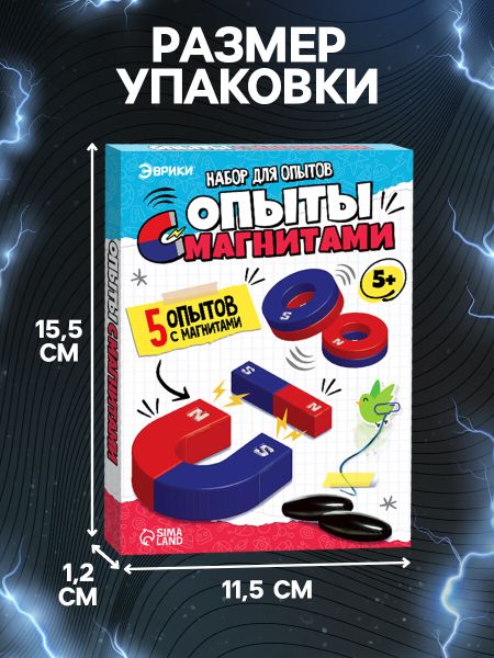 Набор для опытов «Опыты с магнитами, 5 опытов». Набор для проведения увлекательных экспериментов с магнитами станет отличным выбором для детей, интересующихся физикой и научными открытиями. В комплекте есть все необходимое, чтобы провести 5 интересных опытов и наглядно изучить свойства магнитного поля. <strong> Что входит в набор</strong> <ul> <li> Магниты разных форм и размеров.</li> <li> Специальные элементы для сборки магнитных конструкций.</li> <li> Подробная инструкция с пошаговым объяснением опытов.</li> </ul> <strong> Какие эксперименты можно провести</strong> <ul> <li> Изучение притяжения и отталкивания магнитов.</li> <li> Создание невидимых линий магнитного поля.</li> <li> Эксперимент с магнитной левитацией.</li> <li> Проверка взаимодействия магнитов с разными материалами.</li> <li> Создание магнитного маятника.</li> </ul> <strong> Развиваемся играя</strong> Опыт с магнитами — это не просто развлечение, а познавательный процесс, который помогает ребенку развить логику, внимание и научное мышление. Набор подойдет для самостоятельных исследований и проведения мини-экспериментов в кругу семьи. <strong> Для кого</strong> <ul> <li> Детям от 5 лет.</li> <li> Юным исследователям, любознательным и активным.</li> <li> Для домашних опытов и школьных проектов.</li> </ul> Подарите ребенку возможность почувствовать себя настоящим ученым и сделать первые шаги в изучении физических явлений!