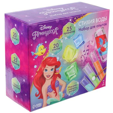 Набор для опытов «Стихия воды», Принцесса. Комплектация: -круговорот воды на планете -холодно-горячий светофор -музыкальный инструмент -самодельный термометр -цветной дождь в стакане -удивительная жидкость -как работает мыло? -шагающая радуга -рассеивание цвета -плавающая рыбка -куда делась вода? -ледяная цепочка -сахарная радуга -бумажная крыша -фокус с монетой -цветочный букет -рождение цвета -цветные капли -очистка воды -цветной лед