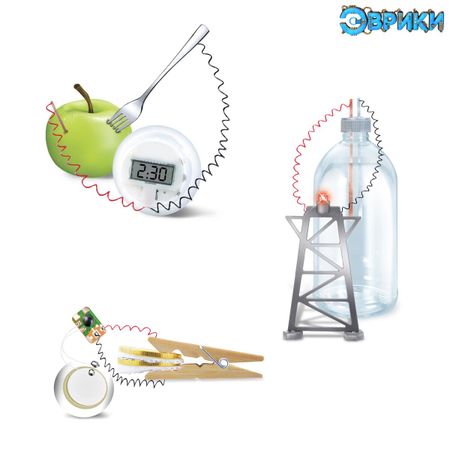Набор для опытов 3 в 1 «Природное электричество», электронный циферблат. <strong> Создавай, изучай и играй! </strong> Заниматься наукой и при этом получать удовольствие? Нет ничего проще! Игровой набор «Природные батарейки» покажет малышу, как получать энергию из альтернативных источников. Будет весело! Набор включает в себя элементы конструктора, с помощью которых ребенок сможет сделать батарейку для часов из картошки, получить из земли энергию для усиления звука, зажечь лампочку от воды и заставить звуковой чип работать от уксуса. Увлекательные эксперименты подарят маленькому ученому яркие впечатления и незабываемые эмоции. Соединяйте провода с цинковыми пластинами, помещайте их в картофель, землю или бутылку с водой и наблюдайте за происходящим. <b> Внутри вы найдете: </b> <ul> <li> инструкцию «Из истории электричества»; </li> <li> 4 цинковых пластины (серебристо-серые); </li> <li> световую башню со светодиодной лампой; </li> <li> 3 специальные крышечки; </li> <li> набор прозрачных клейких лент; </li> <li> 4 соединительных провода; </li> <li> 4 медных пластины (коричневые); </li> <li> 1 звуковой чип; </li> <li> 2 пластиковых стаканчика; </li> <li> 1 бумажный стаканчик; </li> <li> циферблат. </li> </ul> Набор для опытов разовьет у чада логику и мышление, с ним ребенок получит навык практической деятельности и поймет, что учиться — это здорово! Товар предназначен для детей старше 7 лет.