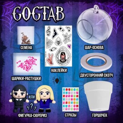 Набор для опытов «Живой аквариум: Мрачная история», вырасти травку. Набор для опытов «Живой аквариум: Мрачная история» станет прекрасным способом занять детей и показать им процесс прорастания семян. Ребенок самостоятельно проведет эксперимент с шариками-растушками, вырастит декоративную травку в домашних условиях, и научится ухаживать за растением. <b> Особенности</b> <ul> <li> В наборе есть все для проведения опыта.</li> <li> Отличный способ научить детей основам ухода за растениями и воспитанию ответственности.</li> <li> Хороший вариант подарка на праздник или просто в качестве приятного сюрприза.</li> </ul> <b> Как использовать набор</b> <ul> <li> Закрепите аквариум на подставке с помощью двусторонней клейкой ленты и украсьте все наклейками и стразами.</li> <li> Высыпьте шарики-растушки в глубокую емкость, залейте их водой в соотношении 1:1 и поставьте на 4-6 часов.</li> <li> Поместите в аквариум выросшие шарики и фигурку. Распределите семена по поверхности шариков и опрысните их водой.</li> <li> Поставьте аквариум на окно или под прямой свет лампы. Через несколько дней семена прорастут!</li> </ul> Набор для опытов рекомендован детям от 5 лет.