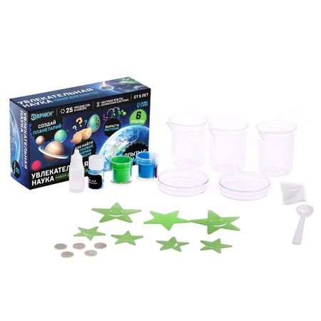 Набор для опытов «Увлекательная наука: Опыты с Земли», 6 опытов. С набором для опытов «Эврики» ребенок узнает об удивительных свойствах веществ, проведет несколько интересных экспериментов, связанных с особенностями одной из планет Солнечной системы. <b> Опыты с другой планеты</b> «Увлекательная наука» поможет лучше узнать химию, понять, как взаимодействуют разные вещества. <b> Что входит в серию наборов для опытов «Планеты Солнечной системы»:</b> <ol> <li> Опыты с Меркурия .</li> <li> Опыты с Венеры .</li> <li> Опыты с Земли .</li> <li> Опыты с Марса .</li> <li> Юпитер и Сатурн .</li> <li> Нептун и Уран .</li> </ol>