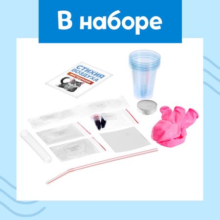 Набор для опытов «Стихия воздуха», 9 опытов. С набором для опытов «Эврики» ребенок почувствует себя настоящим химиком-изобретателем и проведет 9 увлекательных экспериментов, связанных со стихией воздуха! <b> Особенности детского набора для опытов «Стихия воздуха»</b> <ul> <li> Набор содержит все необходимое для проведения 9 увлекательных и познавательных экспериментов.</li> <li> Каждый опыт содержит подробную инструкцию и объяснение того, что происходит.</li> </ul> <b> Список опытов</b> <ol> <li> Растущий шарик.</li> <li> Живая свеча.</li> <li> Бумажная крыша.</li> <li> Сахарные пузыри.</li> <li> Шарик-силач.</li> <li> Магическое притяжение.</li> <li> Измерение объема легких.</li> <li> Звенящие монеты.</li> <li> Огнетушитель.</li> </ol> <b> Увлекательно и полезно!</b> Набор для опытов «Стихия воздуха» — увлекательный способ познакомить ребенка с воздушной стихией и научить его проводить собственные эксперименты. Каждый опыт представлен в интересной и доступной форме, что позволяет юному ученому легко воспринимать информацию и учиться новому. С помощью этого набора ребенок разовьет навыки наблюдения, логического мышления и творческого подхода к решению задач. <b> Погрузитесь в мир стихий</b> Узнайте их секреты с помощью опытов «Эврики»: <ul> <li> Стихия огня. </li> <li> Стихия земли. </li> <li> Стихия воды. </li> </ul> Набор для опытов предназначен для детей старше 5 лет. Дети должны проводить опыты только под присмотром взрослых.