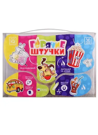 С набором «Горячие штучки» вы сможете создать миниатюрные фигурки из специального пластика. Изначально тонкий, как лист бумаги, под воздействием температуры он уменьшается, твердеет и становится толще. Выберите рисунок, который вы хотите получить, из трех листов трафаретов, обведите с помощью маркера, раскрасьте в любимые цвета и запеките в духовке! А из полученных фигурок вы сможете сделать брелоки, значки, магнитики или украшения.