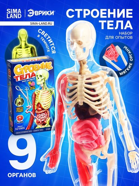 Исследуйте анатомию человека вместе с увлекательным набором для опытов. Этот комплект познакомит ребёнка со строением тела, органами и их функциями в игровой форме. Внутренние органы выполнены из мягкого материала, а сам скелет светится в темноте, превращая обучение в настоящее приключение!Что внутри?Детализированная модель человеческого тела.Мягкие органы, которые можно изучать и размещать внутри модели.Функция светящегося скелета для зрелищного эффекта.Инструкции и познавательные материалы.Оптимальный размер для удобного изучения.Чем полезен набор?Этот комплект делает изучение анатомии наглядным и доступным. Ребёнок сможет:Понять, как устроено человеческое тело.Развить логическое мышление и любознательность.Потренировать мелкую моторику, размещая органы в модели.Почувствовать себя настоящим исследователем.Играть и узнавать!Этот набор подходит для школьников, помогает закрепить знания из учебников и сделать обучение увлекательным.