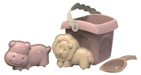 В наборе есть ведро, совок и две формочки в виде животных, при помощи которых можно не только делать куличики, но и играть ими как самостоятельными игрушками. Приятные цвета и четкая деталировка каждого элемента решают задачу не только развлечения, но и обучения.