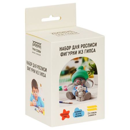 Роспись гипсовых фигурок «ТРИ СОВЫ» – очень простое, увлекательное и полезное занятие для детей, с помощью которого малыш развивает фантазию, точность и аккуратность. В состав набора «Мышонок с котёнком» входит: гипсовая фигурка, краски гуашь, кисточка. В итоге у вас получится фигурка 8,5 см. Набор упакован в картонную коробку.В процессе росписи дети не только развлекаются, но и готовят руку к письму, формируют координацию движений и мышечную память. Кроме того, ребенок тренирует свое воображение, работая с красками. Размеренное и приятное занятие успокаивает, дарит чувство умиротворения и массу позитивных эмоций.«ТРИ СОВЫ» – время с пользой!• Материал: гипс;• Размер фигурки: 8,5 см.