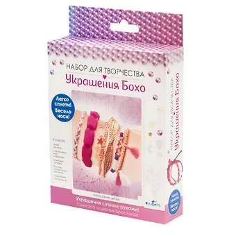 Один набор – это 5 разных браслетов в стиле «Бохо»! Иллюстрированная пошаговая инструкция с советами по плетению. Просто и доступно, без сложных элементов. Разнообразие декоративных элементов для развития фантазии. Браслеты в единой цветовой гамме «Мерцания звезд» станут настоящей изюминкой любого образа юной модницы!