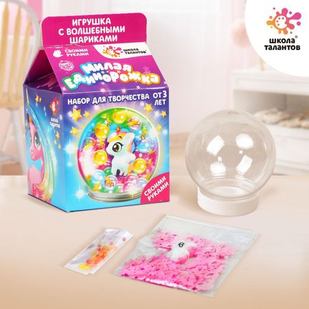 Набор для творчества «Волшебный шар с гидрогелем: милая единорожка». С набором для творчества «Сделай космический шар» ребенок сможет сам сделать самую любимую игрушку. Как играть <ul> <li> Приготовьте специальную баночку.</li> <li> Налейте в нее воду.</li> <li> Засыпьте гидрогель.</li> <li> Добавьте декор и мини-игрушку.</li> <li> Подождите, пока шарики гидрогеля разбухнут.</li> <li> Выключайте свет и наблюдайте за волшебством!</li> </ul> Рассматривайте содержимое волшебного космического шара вместе с ребенком. Обратите внимание на появляющуюся и исчезающую игрушку внутри. Соберите всю серию и дарите волшебные шарики родным и друзьям!