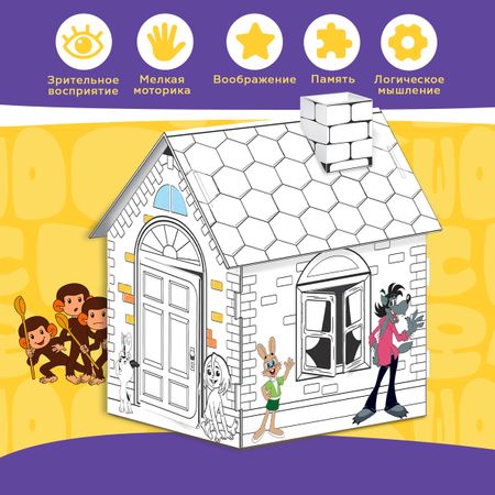 Набор для творчества «Домик-раскраска: Золотая коллекция», из картона, 6 деталей, 5 фломастеров. Набор для творчества «Домик-раскраска» — станет эффектным подарком на любой праздник! Это игрушка, конструктор и раскраска для развития творческих способностей ребенка! Игрушка не только развлечет ребенка, но и поможет развить его пространственное мышление, а также привить любовь к творчеству. Из 6 деталей ребенок соберет объемный конструктор и оживит его яркими цветами. <b> Особенности набора</b> <ul> <li> На стены нанесены рисунки с героями разных союзмультфильмов: «Ну, погоди!», «Маугли», «Бременские музыканты», «Каникулы Бонифация».</li> <li> Конструкция состоит из 6 крупных элементов.</li> <li> Размер домика в собранном виде: 15,8 × 18 × 24 см.</li> <li> Для сборки не требуется клей.</li> <li> В набор входят 5 фломастеров разных цветов.</li> </ul> Рекомендовано детям от 3 лет.