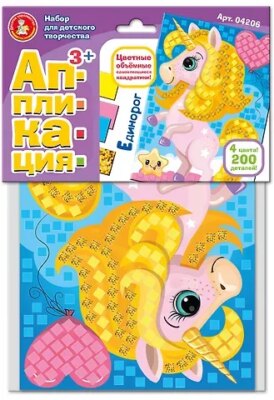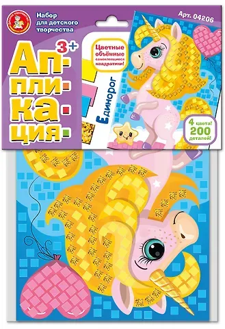 Набор для творчества. Аппликация «Единорог» (4 цв, 200 эл)
