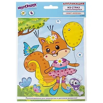 Аппликация из страз ЮНЛАНДИЯ «Белочка» — это весёлый и занимательный способ развития мелкой моторики, аккуратности, цветового восприятия и фантазии ребёнка. Все элементы в составе самоклеящиеся, для работы не требуются ножницы и клей.