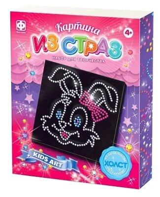 В набор входит: холст на подрамнике, разноцветные стразы, шаблон-инструкция.