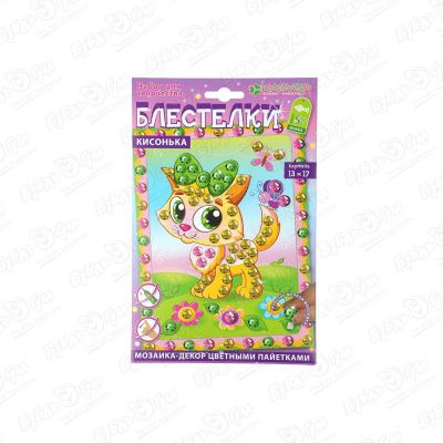 Набор для творчества Клеvер Блестелки мозаика цветными пайетками Кисонька
