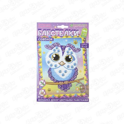 Набор для творчества Клеvер Блестелки мозаика цветными пайетками Совенок