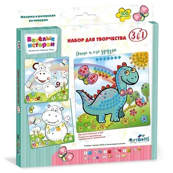 Умение мыслить нестандартно, изобретать, решать сложные задачи простым путем приходит вместе с творческим мышлением. Набор «Дино и его друзья» содержит 3 картинки для увлекательных занятий творчеством и математикой. Мозаика по номерам способствует развитию моторики, внимания. Раскраски по номерам в игровой форме позволяют позаниматься сложением и вычитанием. Придумайте вместе с ребенком рассказ про динозаврика Дино и его друзей по сюжетам картинок. Это поможет расширить словарный запас, научит рассказывать занятные истории. Творческая игра – это всегда интересно!