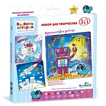 Умение мыслить нестандартно, изобретать, решать сложные задачи простым путем приходит вместе с творческим мышлением. Набор «Путешествие робота» содержит 3 картинки для увлекательных занятий творчеством и математикой. Мозаика по номерам способствует развитию моторики, внимания. Раскраски по номерам в игровой форме позволяют позаниматься сложением и вычитанием. Придумайте вместе с ребенком рассказ про путешествие робота по сюжетам картинок. Это поможет расширить словарный запас, научит рассказывать занятные истории. Творческая игра – это всегда интересно!