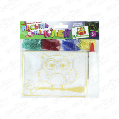 Набор для творчества Насыпь на клей из бисера светится в темноте Сова