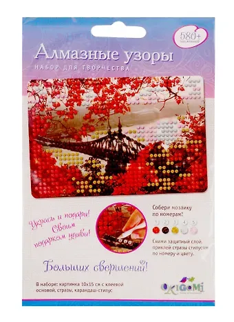 В наборе: картинка с клеевой основой, набор цветных страз, карандаш-стилус.