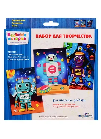Набор для творчества ORIGAMI Веселые истории Космические роботы, гравюра, аппл из эва, раскраска на бархате, 3 раскраски 05111