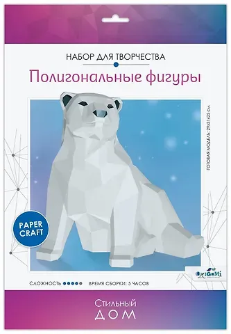 Полигональные фигуры — новый тренд дизайна интерьеров! Эти эффектные объемные фигуры украшают дом и придают любому интерьеру индивидуальность. С набором по созданию полигональной фигуры «Полярный мишка» каждый сможет почувствовать себя модным дизайнером! Вы сможете собрать фигуру, даже если вы никогда не занимались ничем подобным и не имеете специальных навыков. В первую очередь, результат будет зависеть от вашей внимательности и аккуратности. На каждой детали сделаны специальные засечки, которые помогут правильно согнуть детали и сложить их в идеальную объемную фигуру. Процесс склейки занимает несколько часов, в зависимости от сложности модели. Сделайте уникальное украшение для вашего дома своими руками и насладитесь безграничным творчеством!
