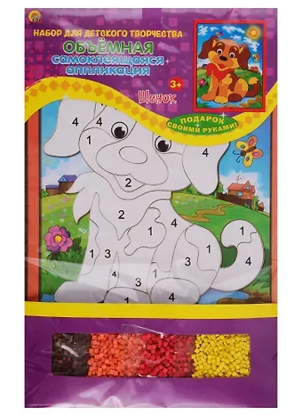 Объемная самоклеющаяся аппликация «ЩЕНОК» — это творческий набор в интересной технике: создание декоративных картин с помощью самоклеящейся аппликации. Вы будете удивлены, как волшебным образом появляется уникальное произведение искусства, которое восхищает изысканной простотой и необычным внешним видом. После окончания готовое изделие можно использовать для украшения интерьера. Состав набора: 1 основа-картинка размером 20×25 см, детали для аппликации.Возраст 6+