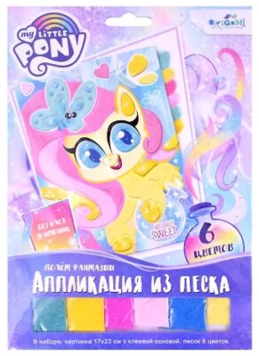 Аппликация из песка с любимыми героями мультфильма My Little Pony «Полет фантазии»- это интересное и полезное занятие, которое развивает мелкую моторику и творческое воображение ребенка. В наборе есть все для красивой поделки: картинка 17х23 см с клеевой основой, шесть ярких цветов песка. Делается картинка без клея и ножниц. Нужно всего лишь снять защитный слой с клеевой основы на картинке, насыпать на деталь песок нужного цвета и размазать его пальчиком. Волшебная песочная картина порадует вашу малышку.