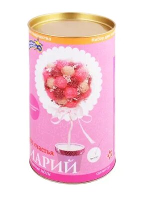 Топиарий или дерево счастья, которое можно «вырастить» своими руками. Большое количество расцветок, разнообразие соцветий и бутонов поможет создать свой волшебный сад дома. Все необходимое имеется в наборе, включая пошаговую подробную инструкцию с фото. В процессе сборки у ребенка развивается мелкая моторика, практические навыки, необходимые в течение всей жизни: умение пользоваться ножницами, клеем, утюгом, объемное мышление, чувство композиции.