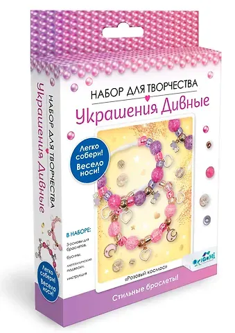 В наборе: 3 силиконовые основы для браслетов, бусины, подвески, инструкция.