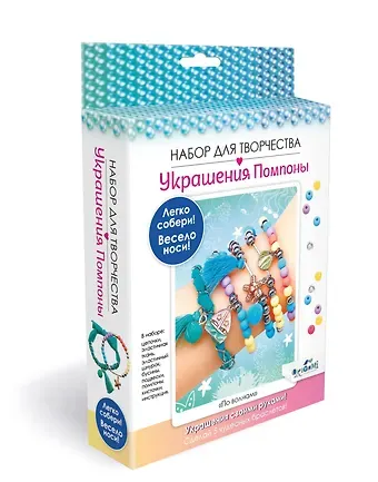 В наборе: цепочки, эластичная ткань, эластичный шнурок, бусины, подвески, помпоны, кисточки, инструкция.