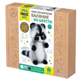 Набор для валяния «Енот» включает все необходимое для создания симпатичной игрушки в технике сухого валяния.