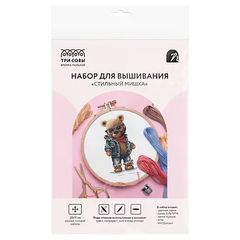 Набор для вышивания крестиком ТРИ СОВЫ «Стильный мишка», 11х20см