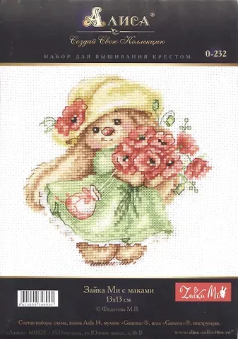 Набор для вышивания крестом «Зайка Ми с маками» (13х13см)