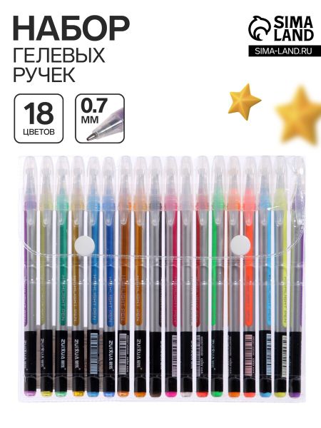 Набор гелевых ручек 18 цветов, корпус серебро в полоску, в блистере на кнопке. Гелевые ручки — набор ярких и насыщенных цветов на каждый день для работы в офисе и учебы. <ul> <li> Ручка имеет круглый корпус.</li> <li> Гелевая консистенция чернил равномерно распределяется по бумаге и быстро сохнет.</li> <li> Сменный стержень позволит использовать ручку максимально долго.</li> <li> Гладкое скольжение пишущего узла, удобный корпус и доказанная надежность делает такие ручки одними из самых популярных письменных принадлежностей среди детей и взрослых.</li> <li> Набор включает гелевые ручки из 6 различных цветов.</li> </ul> Придайте с помощью ярких чернил своему письму уникальность и отличное настроение!Приобрести гелевые ручки можно в нашем интернет — магазине.