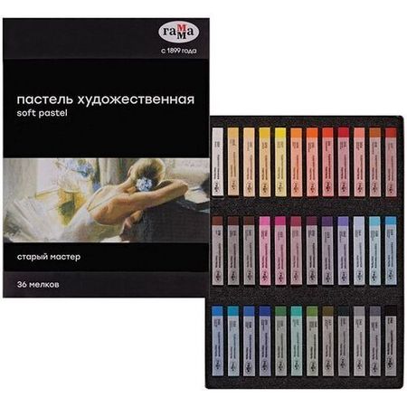 Сухая пастель — чистый пигмент, смешанный с водорастворимым связующим. Мягко ложится, не царапает бумагу, оставляет матовый бархатистый штрих. Насыщенные светостойкие цвета легко смешиваются и растушевываются, позволяя создавать тональные переходы.Средняя мягкость.Квадратное сечение.Каждый мелок в индивидуальной бумажной гильзе, не пачкает руки.