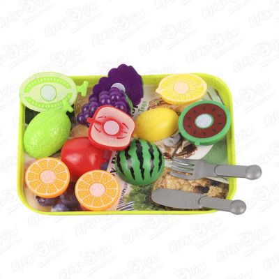 Набор игровой Lanson Toys фрукты резаные на липучках с подносом и столовыми приборами
