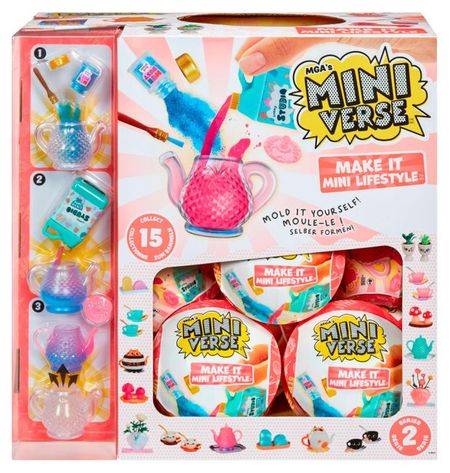 В новой коллекции Лайфстайл от Miniverse вы сможете собрать игрушечные версии предметов интерьера, посуды, растений и аксессуаров для дома! Кроме того, впервые в Miniverse появилась возможность сформовать предметы декора самостоятельно. Внутри каждого шара есть инструкция, по которой можно изготовить чайник, чайную пару, свечу или вазу для цветов с помощью формочек. Из самого шара можно сделать игрушечную полку для размещения и хранения созданного предмета.
