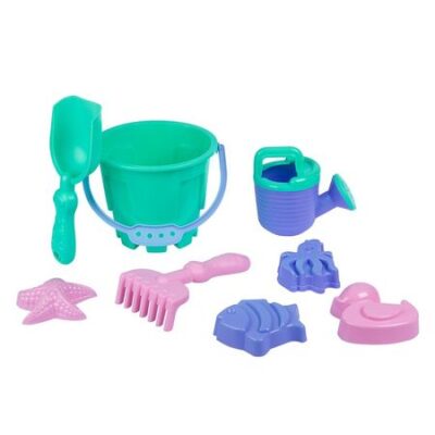Создайте идеальный песочный мир! Набор игрушек для песочницы из 8 предметов в бирюзово-розовых цветах — это всё, что нужно для увлекательных игр на свежем воздухе. Ведро, лейка, лопатка, грабельки и 4 формочки помогут ребёнку строить замки, лепить куличики и исследовать песок с удовольствием.ОсобенностиВ набор входят все необходимые инструменты для игр в песочнице. Ребёнок сможет копать, строить и украшать свои песочные шедевры.Яркие и удобные инструменты сделают игры ещё интереснее.Все предметы выполнены из качественного материала, который выдерживает активное использование.Набор легко взять с собой на прогулку или в поездку. Все предметы компактно складываются, не занимая много места.Развиваемся играяИгры с песком развивают мелкую моторику, воображение и координацию. Ребёнок учится создавать, экспериментировать и находить новые способы игры. Этот набор станет отличным подарком для малышей, которые любят проводить время на улице.