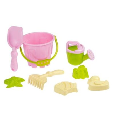 Создайте идеальный песочный мир! Набор игрушек для песочницы из 8 предметов в розово-салатовых цветах — это всё, что нужно для увлекательных игр на свежем воздухе. Ведро, лейка, лопатка, грабельки и 4 формочки помогут ребёнку строить замки, лепить куличики и исследовать песок с удовольствием.ОсобенностиВ набор входят все необходимые инструменты для игр в песочнице. Ребёнок сможет копать, строить и украшать свои песочные шедевры.Яркие и удобные инструменты сделают игры ещё интереснее.Все предметы выполнены из качественного материала, который выдерживает активное использование.Набор легко взять с собой на прогулку или в поездку. Все предметы компактно складываются, не занимая много места.Развиваемся играяИгры с песком развивают мелкую моторику, воображение и координацию. Ребёнок учится создавать, экспериментировать и находить новые способы игры. Этот набор станет отличным подарком для малышей, которые любят проводить время на улице.
