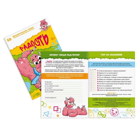 Набор книг «Психологический тренинг. Развиваем эмоциональный интеллект. 4 в 1», 4 книги, 6+. <b> Развиваем эмоциональный интеллект</b> Эмоциональный интеллект позволяет человеку развить эмпатию, легче справляться с внешними изменениями. В этот набор входит 4 книжки, которые помогут дошкольникам и школьникам научиться осознавать свои эмоции и чувства, находить причину их возникновения и правильно с ними справляться. <b> Какие книги входят в набор?</b> <ol> <li> «Злость». Книга описывает 18 действенных способов справиться с этой эмоцией. Детям предстоит сминать странички, собирать ловушку для злости, запускать воздушный шар, рисовать эмоции и не только.</li> <li> «Грусть». Из книги дети узнают 19 действенных способов справиться с грустью. Ребята будут делать воронку для грусти, заполнять страничку настроения, заполнять чек-листы и даже составлять колесо жизненного баланса.</li> <li> «Страх». Книга расскажет 22 действенных способа справиться с любым страхом. Детям предстоит сделать термометр страха, написать ему письмо, попробовать упражнения из йоги и дыхательной гимнастики, пройти лабиринт, приготовить эликсир смелости и многое другое.</li> <li> «Радость». Ребята узнают 20 действенных способов радоваться жизни и мыслить позитивно. Им предстоит пройти тест на мышление, вести дневник радости и страничку благодарности, складывать оригами и многое другое.</li> </ol> В каждой книге детям предлагается выполнить задания, которые помогут развить не только эмоциональный интеллект, но и мелкую моторику, внимание, логику, пространственное мышление и так далее. <b> Набор для развития ребенка!</b>